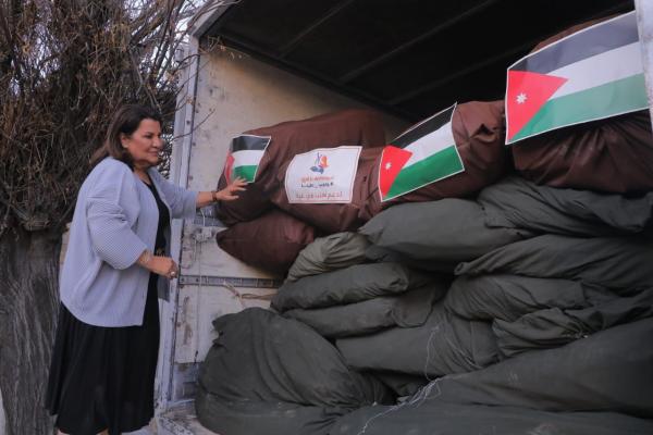 وكالة الناس – قامت العين خولة العرموطي بتسيير القافلة التاسعة التي تضم عددمن شاحنات محملة بالخيم وحليب الأطفال والطرود الغذائية والبطانيا وفرشات وملابس الشتاء إلى الهيئة الخيرية الهاشمية.