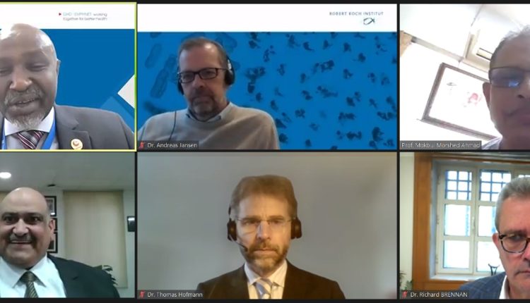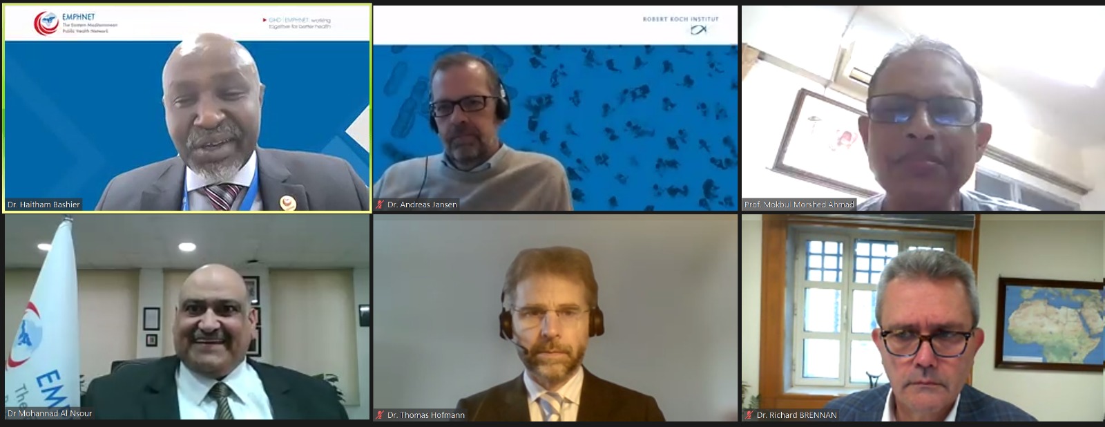 عُقدت الجلسة مساء يوم 16 يناير/كانون ثاني 2024 عبر تطبيق زوم (Zoom)، وتحدث خلالها عدد من الخبراء المختصين في هذا المجال على المستويين الإقليمي والعالمي، وهم: أستاذ ورئيس قسم التنمية والاستدامة في المعهد الآسيوي للتكنولوجيا في بانكوك، الدكتور مقبل مرشد أحمد، ورئيس مركز المعلومات لحماية الصحة الدولية في معهد روبرت كوخ، الدكتور أندرياس يانسن، ورئيس قسم الاستعداد لحالات الطوارئ ومراقبة ودعم الاستجابة في المركز الأوروبي للوقاية من الأمراض ومكافحتها، الدكتور توماس هوفمان، مدير البرنامج الإقليمي للطوارئ بالمكتب الإقليمي لمنظمة الصحة العالمية لشرق المتوسط، الدكتور ريتشارد برينان.