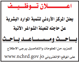 فرصة عمل لدى المركز الاردني لتنمية الموارد البشرية