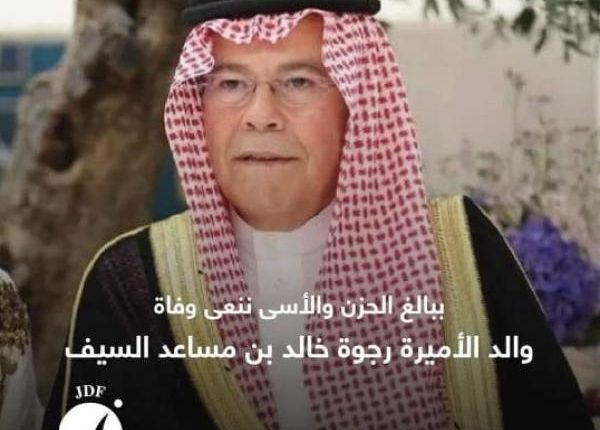 تنعى ببالغ الحزن والأسى، والد صاحبة السمو الملكي الأميرة رجوة الحسين، المرحوم خالد بن مساعد بن سيف بن عبدالعزيز السيف.