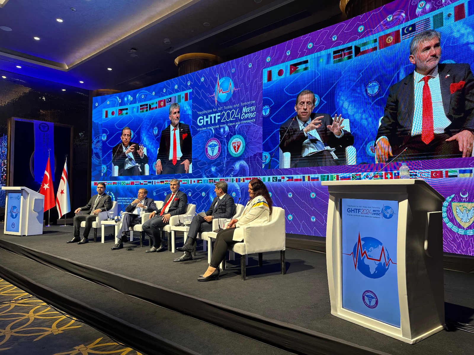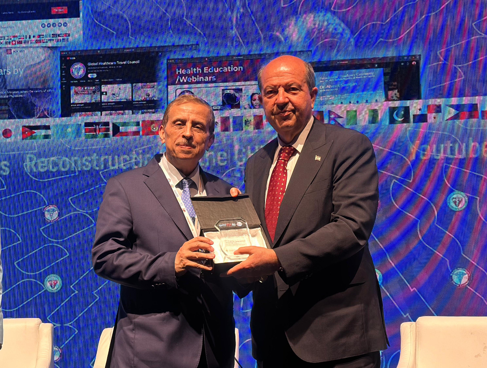 وكالة الناس – شارك الدكتور فوزي الحموري الرئيس الفخري للمجلس العالمي للسياحة العلاجية مدير عام المستشفى التخصصي والدكتور نائل زيدان مصالحة رئيس جمعية الخاصة في المنتدى العالمي للسفر الصحي الذي اقيم في جمهورية شمال قبرص تحت رعاية رئيس الجمهورية أرسين تاتار وبحضور رئيس الوزراء أونال أوستال وعدد من الوزراء وبحضور ممثلي 45 دولة أعضاء في المجلس.