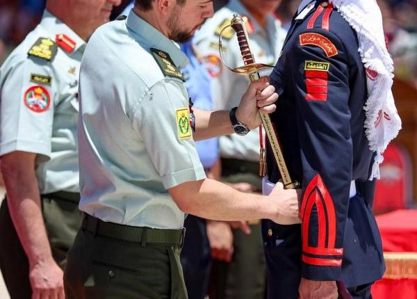 ونشر ولي العهد صورًا له أثناء تكريمه أوائل الخريجين، وكتب عليها عبر موقع التواصل الاجتماعي انستقرام، “خلال تخريج كوكبة من ضباط مؤتة السيف والقلم.. مبارك لكم وهنيئاً لذويكم الذين انتظروا هذا اليوم بفارغ الصبر والشكر الموصول للهيئة التدريسية والقادة العسكريين على ما بذلوه من جهد عظيم”.