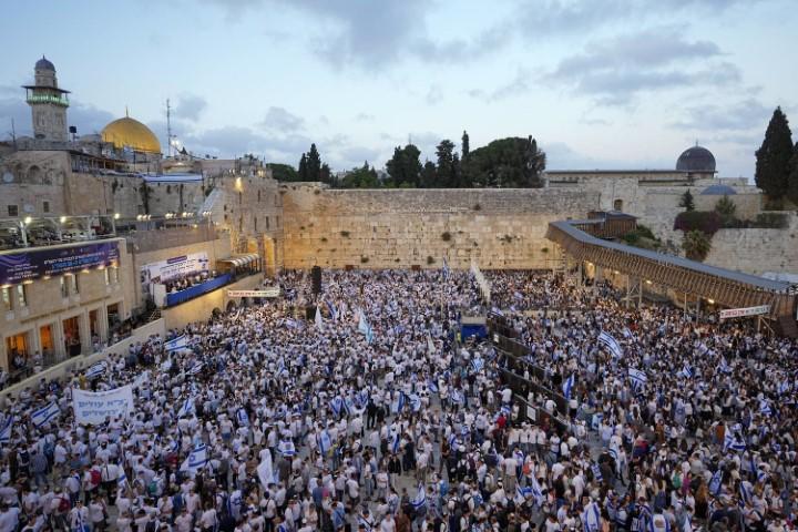 وتجمّعت حشود من الإسرائيليين في مناطق عدة من القدس، وحملوا أعلام إسرائيل البيضاء والزرقاء، وسار عشرات الآلاف وهم يرقصون ويغنون في الشوارع.