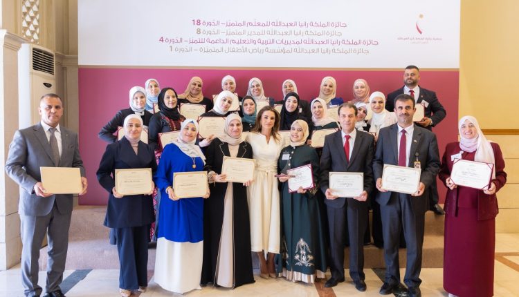 وكرّمت جلالة الملكة رانيا العبدالله الفائزين بـ “جائزة الملكة رانيا العبدالله للمعلّم المتميّز” في دورتها الثّامنة عشرة، و”جائزة المدير المتميّز” في دورتها الثّامنة، و”جائزة مديريّات التّربية والتّعليم الدّاعمة للتّميُّز” في دورتها الرّابعة، و”جائزة رياض الأطفال” في دورتها الأولى.