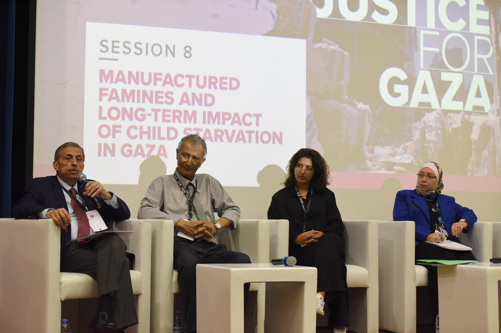 وترأس جلسة “المجاعات المصطنعة والأثر الطويل الأجل لتجويع الأطفال في غزة” الدكتور الحموري حيث تم تسليط الضوء على كيفية تحليل المجاعات المصطنعة واستخدام الجوع كأداة استراتيجية في النزاع، وذكر أعداداً فاقت الـ 3500 طفل تحت تهديد الموت نتيجة للتجويع، بينما ذكرت التقارير وفاة ما يزيد عن 30 طفل قضوا لذات السبب.