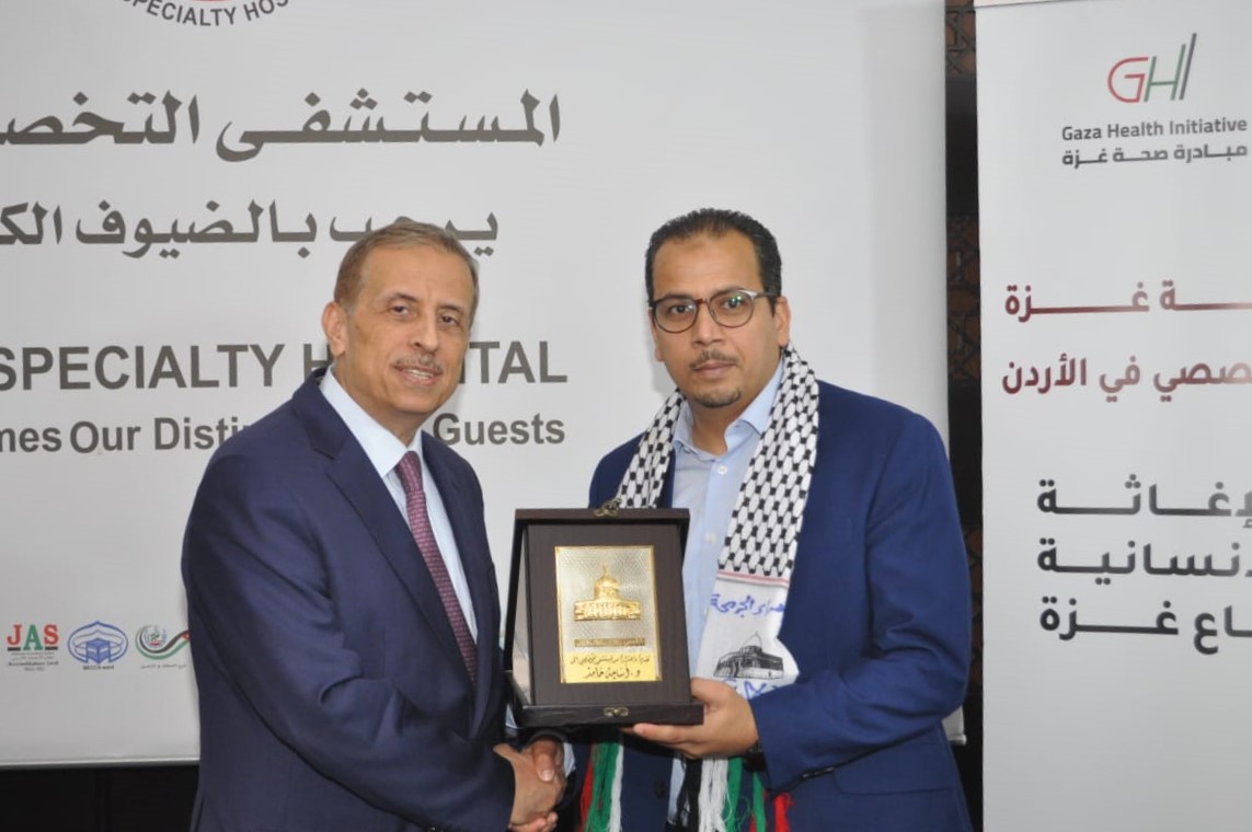 وقد ثمن الحموري في كلمته التي ألقاها بالمناسبة الجهود العظيمة التي قام بها الفريق واصفاً الأطباء والممرضين بالأبطال الذين جاؤوا من مختلف دول العالم واصفاً أرض الأردن بالعضد الذي لا يميل عن إسناد أشقائه المكلومين على أرض فلسطين لا سيما وأن أصبح الأردن أرض التئام وانطلاق للمنظمات الانسانية الدولية والفرق الطبية التي تهبّ لمد يد العون للأشقاء في قطاع غزة، موضحاً بأن ما تقوم به الفرق الطبية في إنقاذ مئات الأرواح من المدنيين العزل، ووضعوا أرواحهم على أكفهم وذهبوا الى أرض غزة التي تتعرض لعدوان غاشم من جيش لا يحترم قانونا ولا معاهدات ولا أعراف ويقوم بمهاجمة الأماكن التي يفترض أن تكون آمنة مثل المستشفيات والملاجئ والمدارس والجامعات والمساجد والكنائس لا بل يستهدف المدارس والملاجئ التابعة للأونروا.