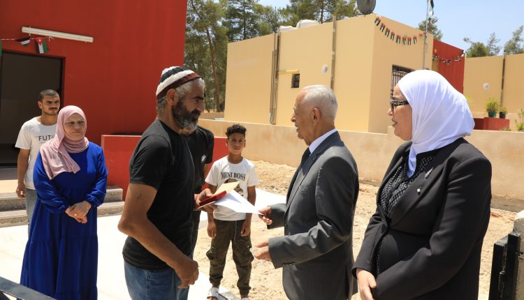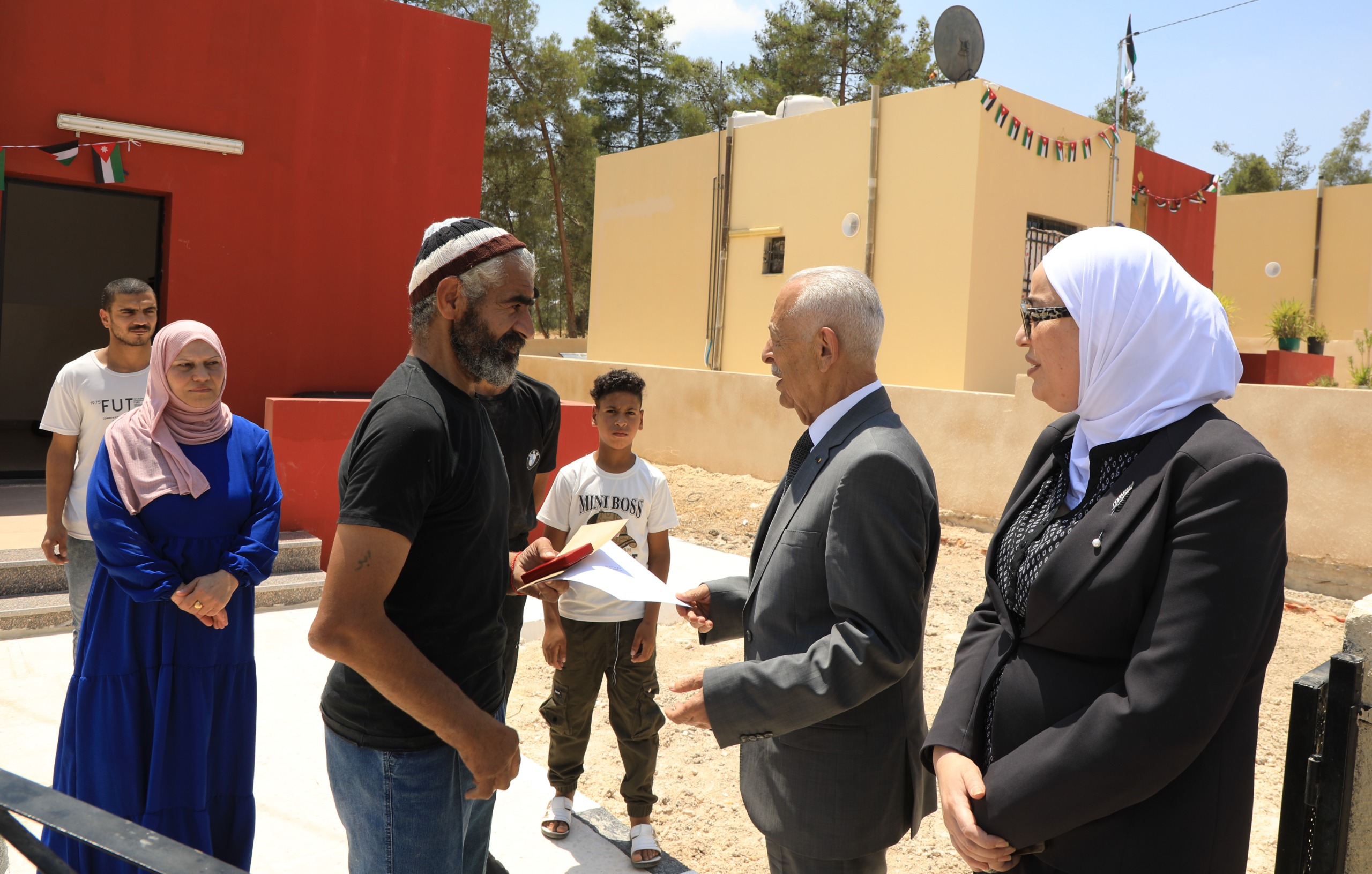 وسلم رئيس الديوان الملكي الهاشمي يوسف حسن العيسوي، رئيس لجنة متابعة تنفيذ مبادرات جلالة الملك، بحضور وزيرة التنمية الاجتماعية وفاء بني مصطفى، ومحافظ إربد رضوان العتوم، شهادات الانتفاع ومفاتيح المساكن للأسر المستفيدة.