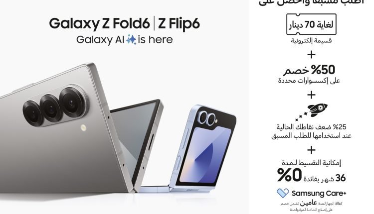 هذا وسيتمتع كل من يرغب بشراء الهاتفين معًا، Galaxy Z Fold6 و Galaxy Z Flip6، بفرصة الحصول على على مختلف المزايا والخصومات المقدمة لمشتري أي من الهاتفين، لكن مع قسيمة إلكترونية بقيمة تصل لغاية 70 ديناراً.