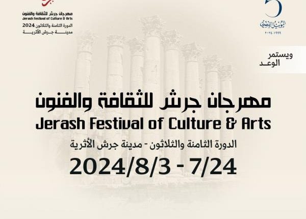 وكالة الناس – تحت الرعاية الملكية السامية، تنطلق في السابعة من مساء يوم غد الأربعاء، فعاليات “مهرجان جرش للثقافة والفنون” في دورته الـ 38 ، تحت شعار “ويستمر الوعد”، وتحتفي الدورة باليوبيل الفضي لتولي جلالة الملك عبد الله الثاني سلطاته الدستورية، وتتضامن فعالياتها مع أهالي فلسطين وقطاع غزة، الذين يتعرضون لحرب إبادة جماعية منذ 7 تشرين الأول الماضي على يد قوات الاحتلال الإسرائيلي.