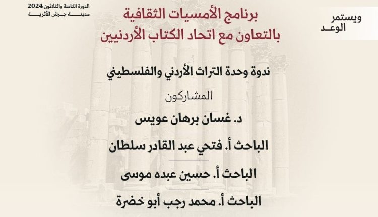 مهرجان جرش ينظم ندوة حول وحدة التراث الأردني والفلسطيني بالتعاون مع اتحاد الكتاب الأردنيين