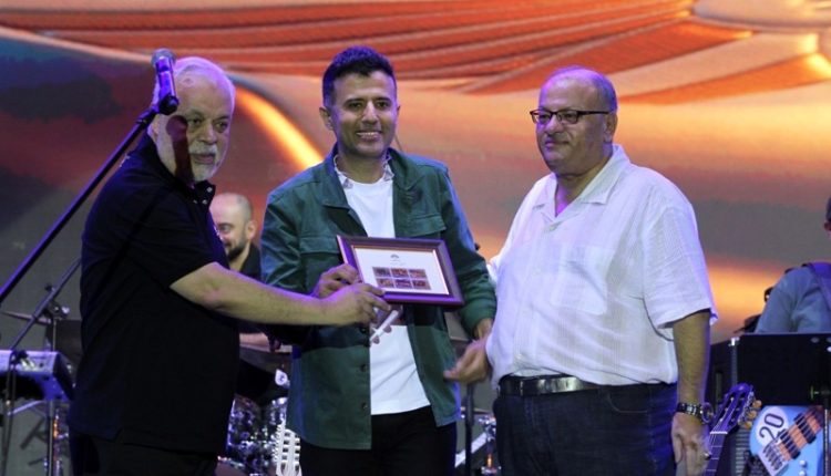 وكرم المدير التنفيذي لمهرجان جرش ايمن سماوي ونقيب الفنانين المصرين أشرف زكي الفنان حمزة نمرة بدرع المهرجان تقديرا وشكرا لهذه الليلة التي لن تمسح من ذاكرة مهرجان جرش.