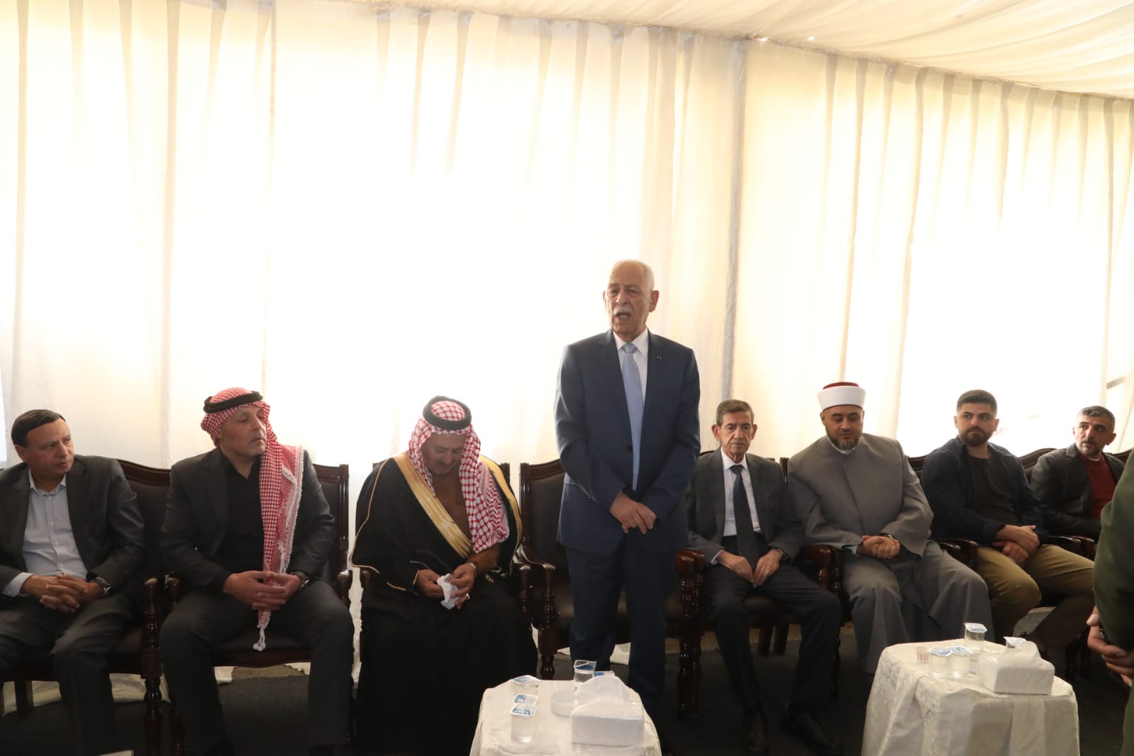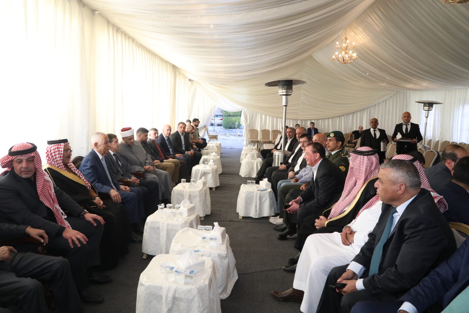 وكالة الناس -مندوبا عن جلالة الملك عبدالله الثاني وسمو الأمير الحسين بن عبدالله الثاني، ولي العهد، قدم رئيس الديوان الملكي الهاشمي يوسف حسن العيسوي، اليوم الثلاثاء، واجب العزاء إلى قبيلة الحويطات/ عشيرة أبو تايه بوفاة غازي مشهور زعل أبو تايه، وإلى عشيرة الدباس بوفاة الحاج مصطفى محمد الدباس، وغلى عشيرة الشوبكي بوفاة باسمة أحمد المزاريب، زوجة الحاج رضوان محمد الشوابكة.
