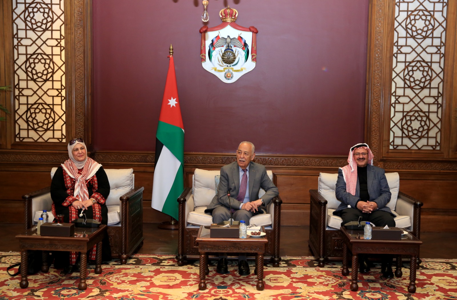 جاء ذلك خلال لقائه في الديوان الملكي الهاشمي، اليوم الخميس، بحضور مستشار جلالة الملك لشؤون العشائر كنيعان البلوي، وفدًا نسائيًا من سيدات الكرك القاطنات في محافظة الزرقاء، ووفدًا يمثل فريق “ملهمون للعمل الشبابي والتطوعي”، في لقاءين منفصلين.