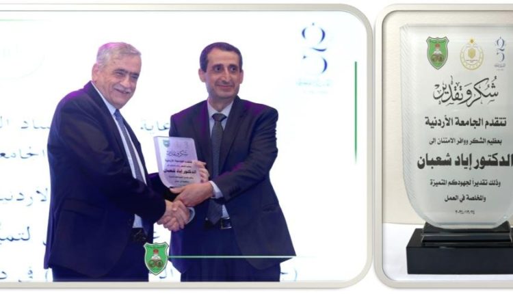 الجامعة الأردنية تُكّرم د. إياد شعبان مساعد رئيس جامعة عمّان الأهلية ( صورة )