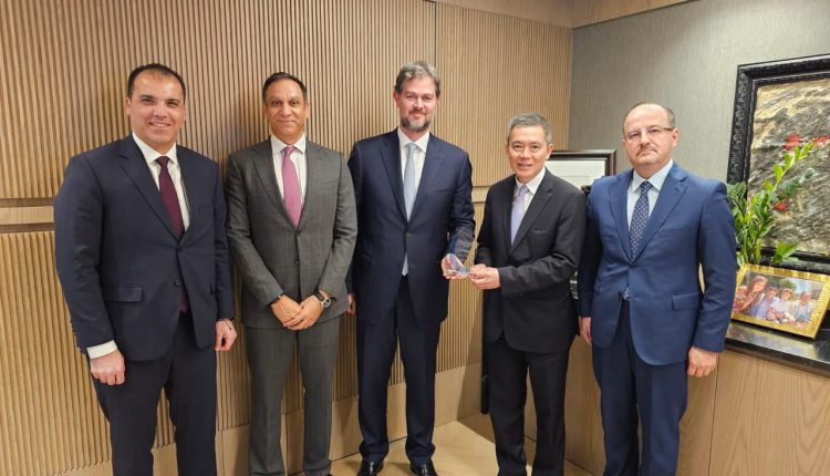 وتسلم الرئيس التنفيذي للبنك الأردني الكويتي هيثم البطيخي الجائزة من مدير مجموعة المؤسسات المالية في بنك جي بي مورغان تشيس، خلال زيارة وفد من البنك الأمريكي للبنك الأردني الكويتي، بحضور إبراهيم بيشه – رئيس الخزينة والمؤسسات المالية.