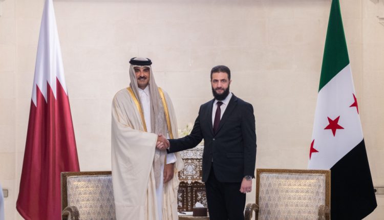 أمير قطر يؤكد خلال لقائه الشرع الحاجة للمضي في مشاريع إعادة إعمار سوريا