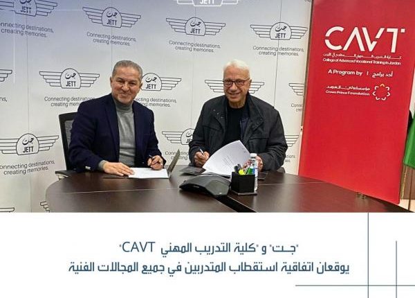 ووقع الاتفاقية كل من الرئيس التنفيذي لشركة النقليات السياحية “جت” الدكتور خالد ديب اللحام والرئيس التنفيذي لمركز التدريب المهني المتقدم المهندس عمار الغرايبه واكد اللحام جاهزية الشركة في نقل الخبرة الفنية الميدانية لخريجي مراكز التدريب المهني المتقدم والعمل معهم لضمان اختيار الفئة الماهرة للالتحاق بفريق الشركة بعد التدريب حسب الحاجة، وبدوره ثمن الغرايبه خطوة “جت” في استقطاب خريجي المراكز كونهم سيكونون ضمن بيئة عمل لأكبر علامة تجارية متخصصة في النقل ومالكة لأكبر أسطول ومراكز ومحطات فنية متخصصة تتبعها في الأردن.