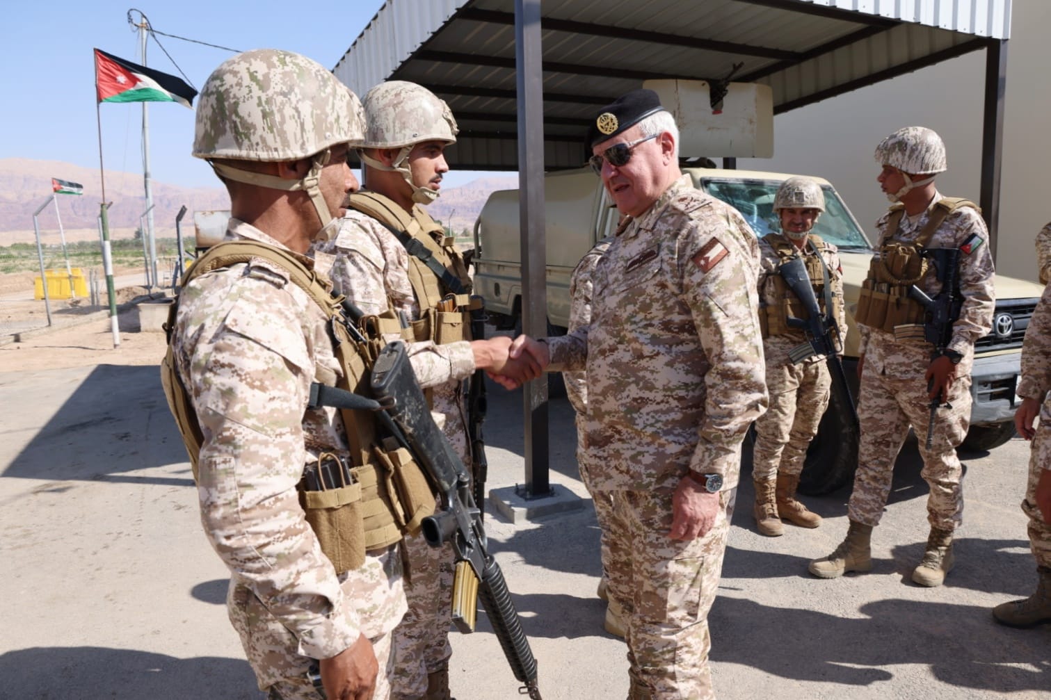 وكالة الناس -تفقد رئيس هيئة الأركان المشتركة اللواء الركن يوسف أحمد الحنيطي اليوم الأربعاء، واجهة كتيبة حرس الحدود/8 الملكية إحدى وحدات لواء حرس الحدود/3 التابع للمنطقة العسكرية الجنوبية، وكان في استقباله قائد المنطقة.