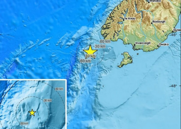 ويبعد مركز الزلزال 160 كلم عن أقرب قرية مأهولة في الجزيرة الجنوبية.