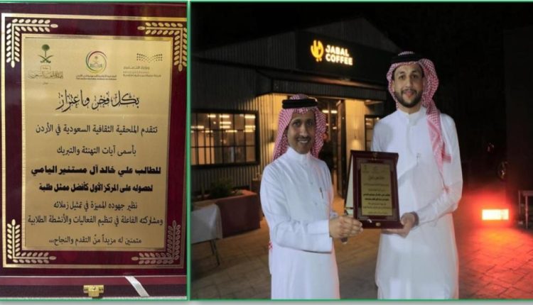 وكالة الناس – حصل الطالب علي خالد آل مستنير اليامي من جامعة عمان الأهلية على لقب ” أفضل ممثل للطلبة السعوديين” في حفل تكريمي نظمته الملحقية الثقافية السعودية في الأردن.