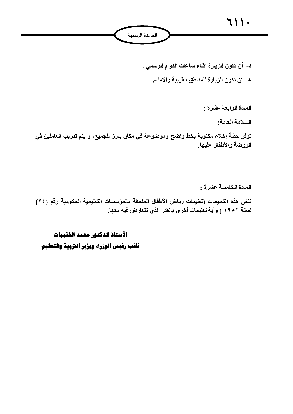 وتاليا شروط وتعليمات الالتحاق برياض الأطفال :