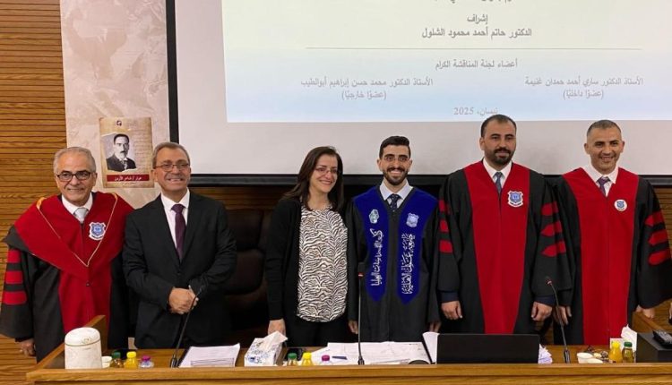 وتكونت لجنة المناقشة من رئيس جامعة عمان الأهلية الأستاذ الدكتور ساري حمدان مناقشاً داخليا، والأستاذ الدكتور محمد ابو الطيب من الجامعة الأردنية مناقشا خارجياً، وأشرف على الرسالة الدكتور حاتم الشلول رئيس قسم التربية البدنية والصحية في كلية العلوم التربوية مشرفا رئيسياً.