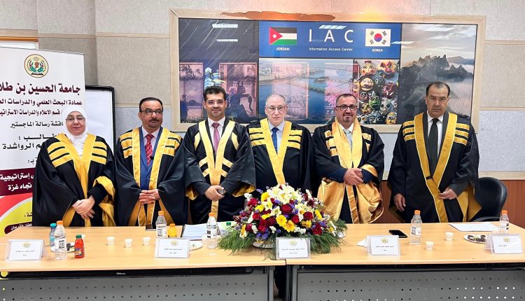 وكالة الناس -مأمون الخوالدة – مبارك للزميل والأخ الصحفي أحمد الرواشدة حصوله على درجة الماجستير في الدراسات الاستراتيجية وبامتياز من جامعة الحسين بن طلال ، وذلك بعد مناقشة رسالته الموسومة بـ: