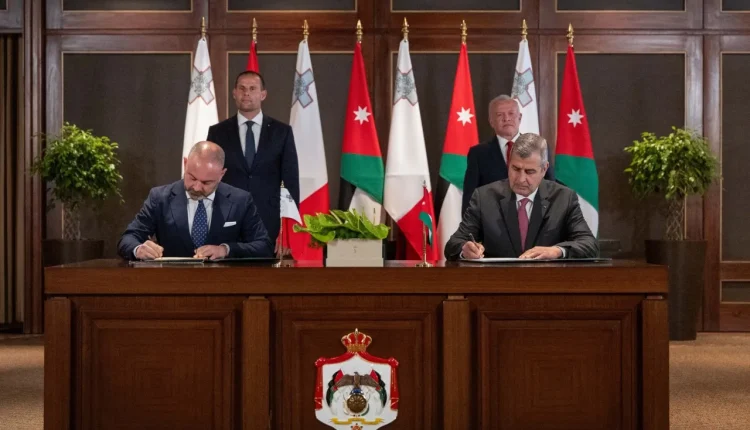 وكالة الناس -شهد الملك عبدالله الثاني ورئيس وزراء مالطا روبرت أبيلا ، مساء الاثنين ، توقيع اتفاقية إطارية للتعاون بين البلدين، وثلاث مذكرات تفاهم في مجالات المياه والطاقة، والسياحة، والأرشفة وتبادل اللغات.