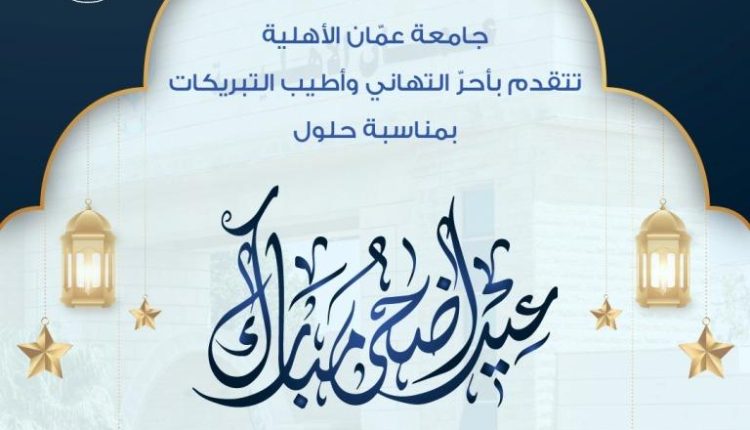 عمان الأهلية تهنىء بمناسبة حلول عيد الأضحى المبارك