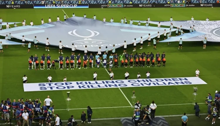 وكالة الناس – خاطر الاتحاد الأوروبي لكرة القدم (يويفا) بجر نفسه إلى عاصفة سياسية بعرضه لافتة عملاقة كُتب عليها «أوقفوا قتل الأطفال – أوقفوا قتل المدنيين» على أرض الملعب قبل انطلاق كأس السوبر الأوروبي.