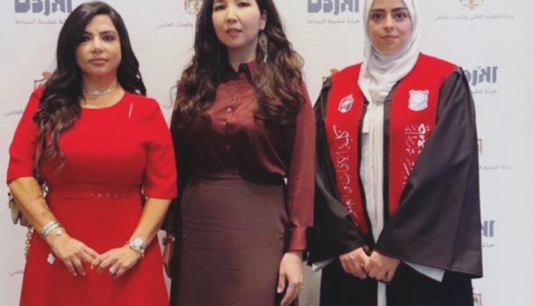 وقد مثلت الجامعة في هذا الحدث الدكتورة نور الدباس نائب عميد شؤون الطلبة، حيث جرى تكريم الطالبة شذى محمد السوسه من الجمهورية اليمنية الحاصلة على درجة البكالوريوس في الترجمة، والطالبة جلنار ميرادوفا من جمهورية تركستان الحاصلة على درجة الماجستير في إدارة الأعمال، وذلك تقديرًا لتفوقهما الأكاديمي وتميزهما في التحصيل العلمي خلال فترة دراستهما في الجامعة.