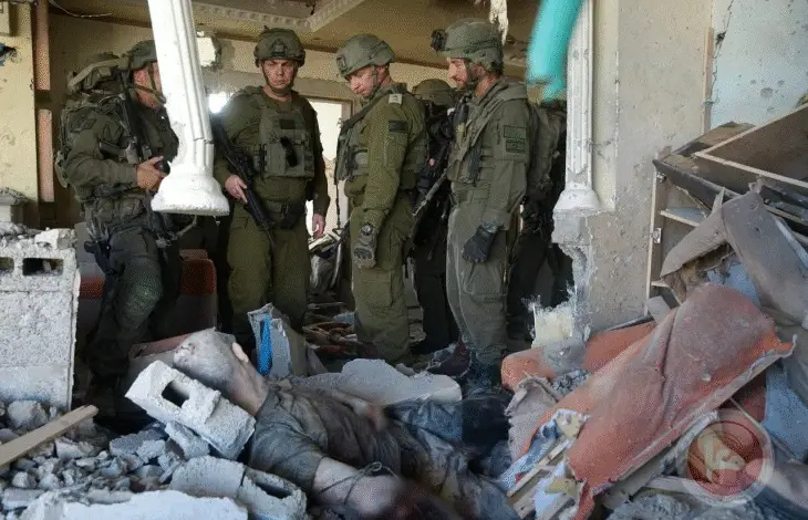 تُظهر الصورة التي نشرها الاحتلال جثمان مُخطط هجوم 7 أكتوبر، يحيط به جنود الاحتلال، بينهم قائد المنطقة الجنوبية السابق يارون فينكلمان، وقائد فرقة غزة باراك حيرام، ورئيس فرقة العمليات السابق عوديد سيوك.