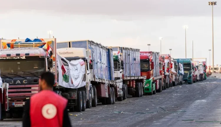 ازدحام شاحنات المساعدات عند رفح وسط بدء إدخالها عبر المعبر المصري