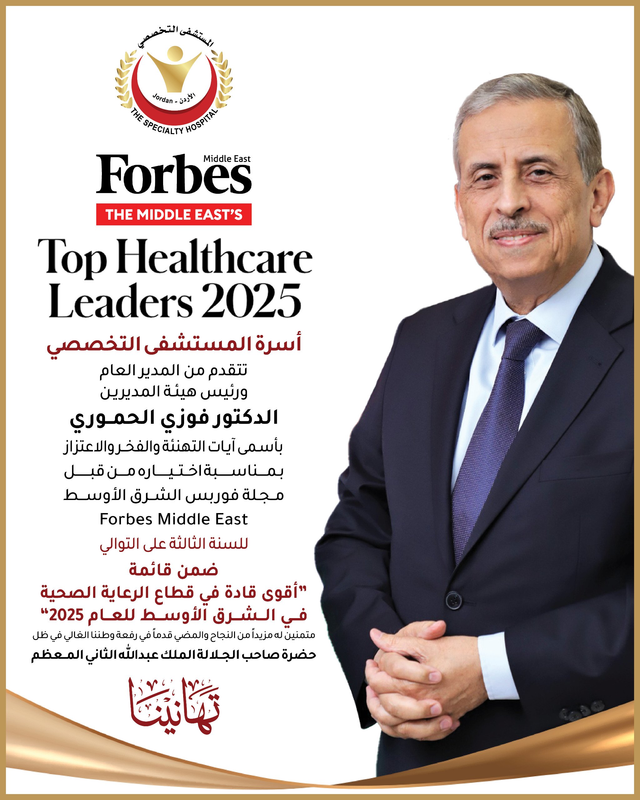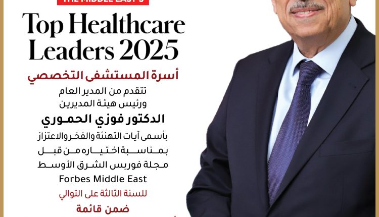 الحموري ضمن أقوى قادة الرعاية الصحية في الشرق الأوسط لعام 2025 حسب تصنيف فوربس الشرق الأوسط