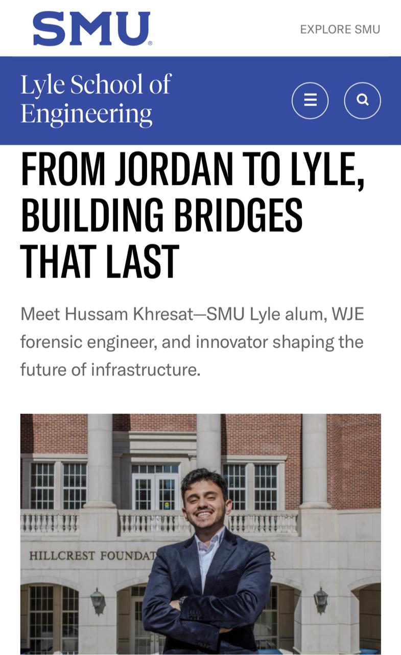 في زمن تتسارع فيه وتيرة التطور العلمي، يسطع اسم الدكتور حسام الدين مازن خريسات كأحد النماذج الأردنية المشرقة التي جمعت بين العلم والطموح والإبداع نشأ حسام في أسرة تؤمن بأن الهندسة ليست مجرد مهنة، بل رسالة لبناء الإنسان والعمران معاً، فحمل هذا الإيمان معه منذ طفولته في السلط، ليشق طريقه نحو التميز العلمي العالمي.