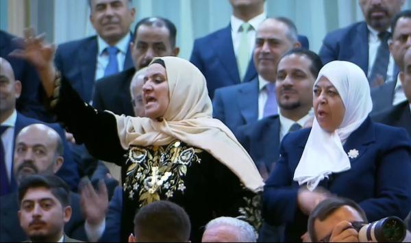 ولدى دخول جلالة الملك قبة الرلمان، بدأت إحدى السيدات بالمهاهاة له، وتبعتها اخريات بالزغاريد.