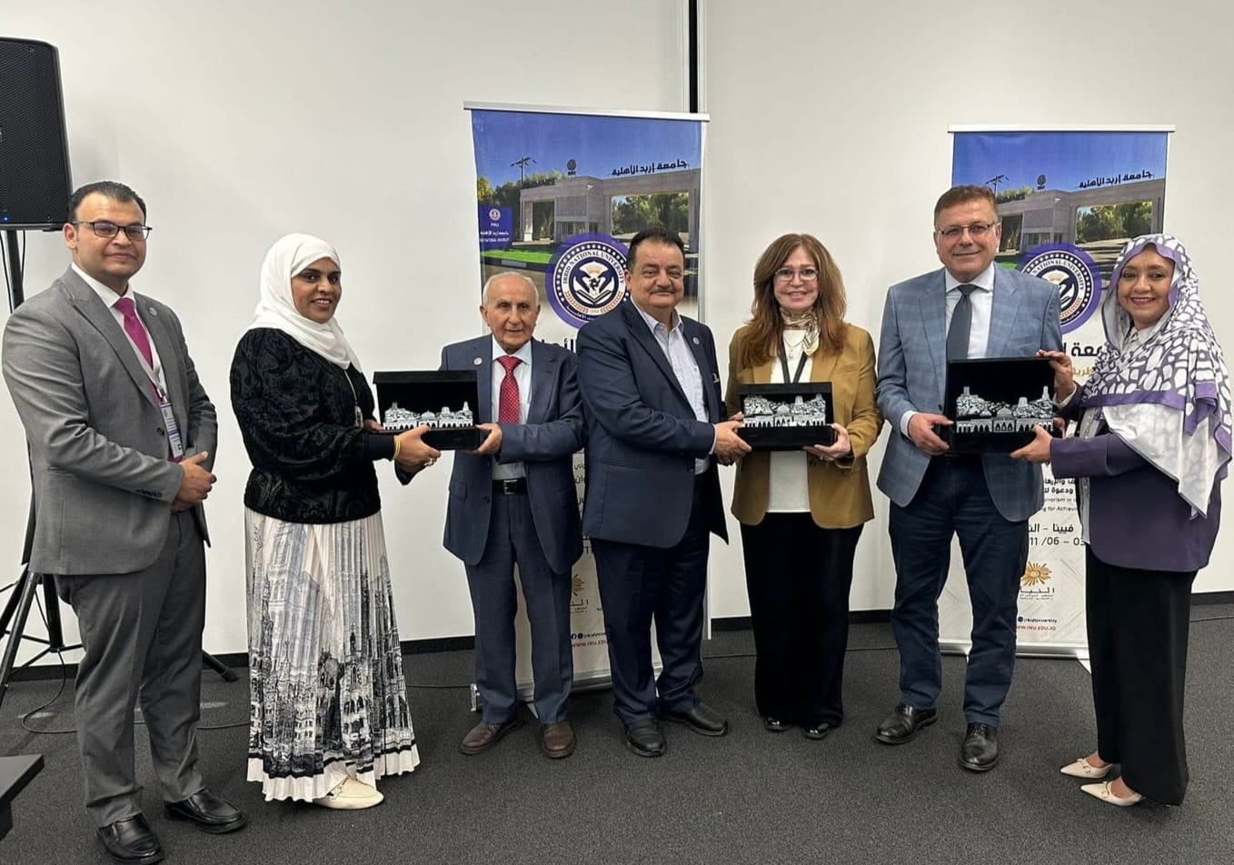 وفي ختام أعمال المؤتمرين، قام عطوفة الأستاذ الدكتور عدنان يوسف العتوم/ رئيس مجلس أمناء الجامعة ورئيس اللجنة العليا للمؤتمرات، وعطوفة الدكتور أحمد موسى العتوم/ رئيس هيئة المديرين وعضو اللجنة العليا للمؤتمرات، الأستاذ الدكتور ماجد أبو زريق/ رئيس الجامعة- راعي المؤتمرين، والأستاذ الدكتور محمد إبراهيم مقابلة عميد كلية العلوم الإدارية والمالية ورئيس اللجان العلمية، بتوزيع دروع الجامعة التذكارية لرؤساء الجلسات وأفضل الابحاث المقدمة، والشهادات التقديرية للمشاركين في المؤتمرين، وقدّموا شكرهم وتقديرهم للمشاركين ولرؤساء وأعضاء اللجان التحضيرية والعلمية والتنظيمية، مثمنين جهودهم المميزة في إنجاح فعاليات المؤتمرين، ومؤكدين أن هذه المشاركة الدولية تمثل خطوة متقدمة في مسيرة الجامعة نحو الريادة والتميز، وتَعكس حضورها الفاعل في الساحة الأكاديمية الإقليمية والدولية.