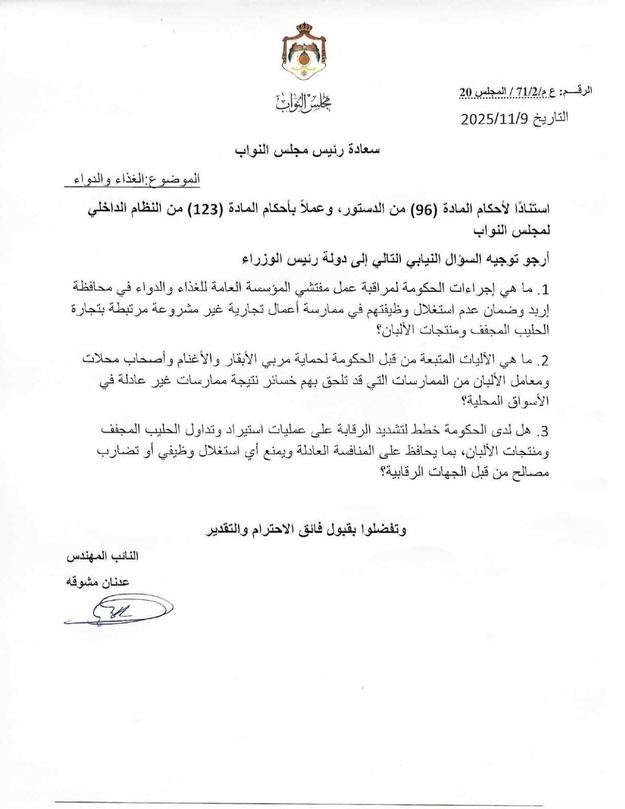 3. هل لدى الحكومة خطط لتشديد الرقابة على عمليات إستيراد و تداول الحليب المجفف و منتجات الألبان، بما يحافظ على المنافسة العادلة و يمنع أي إستغلال وظيفي أو تضارب مصالح من قبل الجهات الرقابية؟