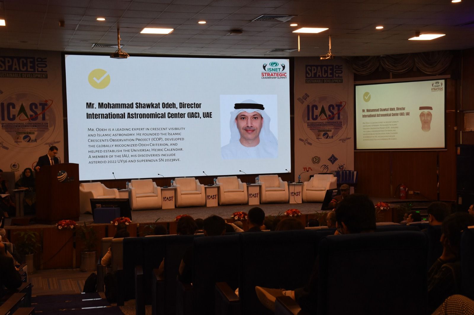 وكالة الناس – شارك مركز الفلك الدولي في مؤتمر دولي نظمته وكالة الفضاء الباكستانية ومعهد تكنولوجيا الفضاء، بعنوان “المؤتمر الدولي لتطبيقات علوم الفضاء والتكنولوجيا” وذلك في العاصمة الباكستانية إسلام أباد، خلال الفترة من 18-20 نوفمبر 2025م، ويعتبر هذا المؤتمر أحد أكبر المؤتمرات التي تنظم بشكل دوري في الباكستان، وشارك في المؤتمر وفود ومدراء عدة وكالات الفضاء، ورواد فضاء، ويقدر عدد المشاركين بحوالي 200 مشارك، وعدد الجلسات أكثر من 40 جلسة موزعة على مدى ثلاثة أيام.