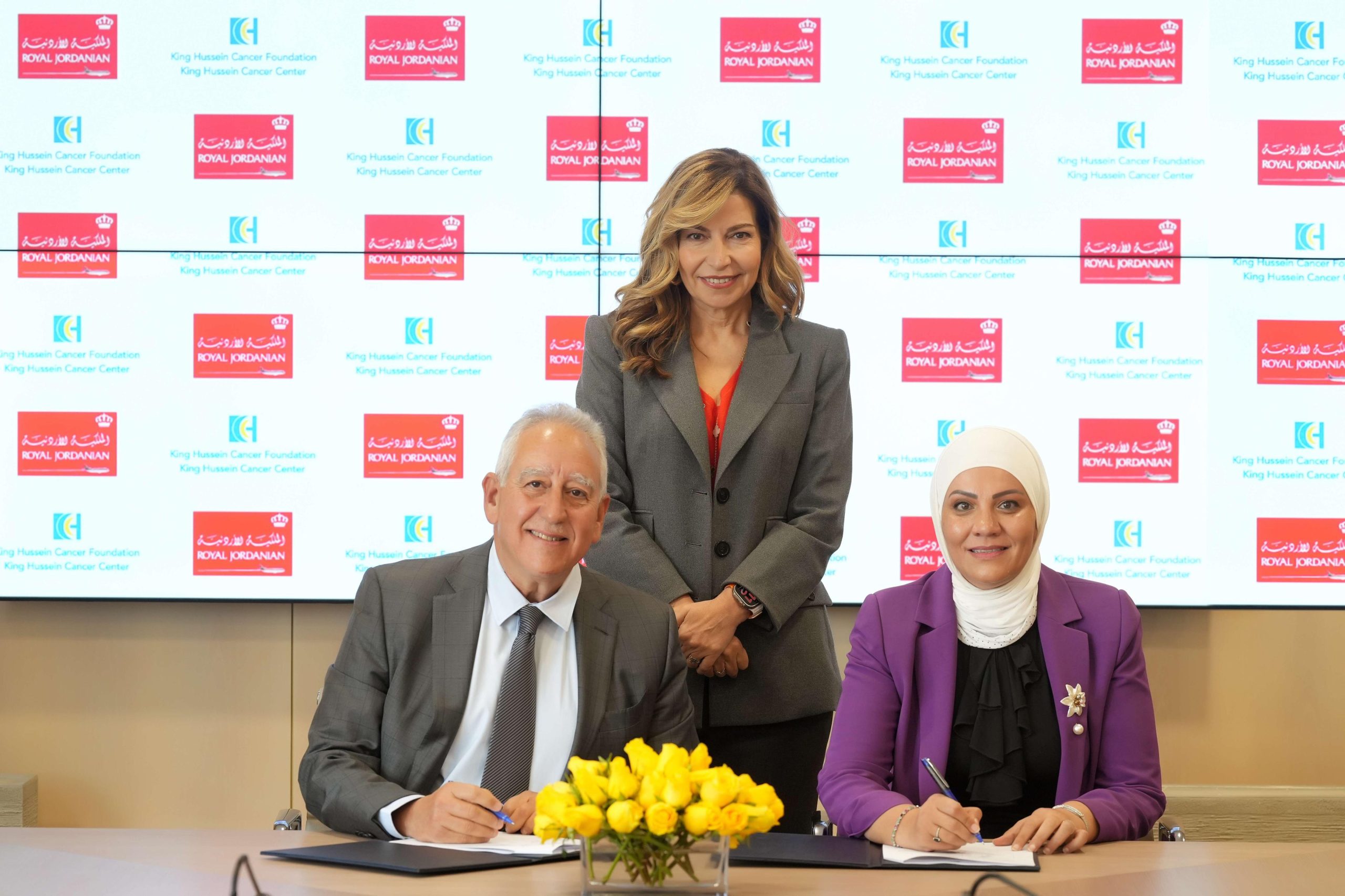 ووقّعت الاتفاقية مدير عام مؤسسة الحسين للسرطان نسرين قطامش، وعن الملكيّة الأردنية، نائب رئيس مجلس الإدارة /الرئيس التنفيذي المهندس سامر المجالي.