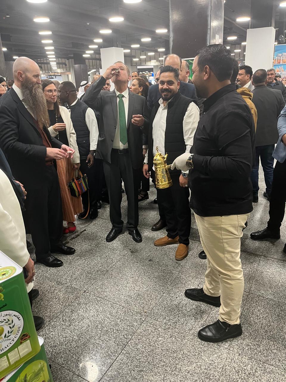 وقام الضيفان بتذوّق زيت الزيتون المعروف بجودته العالية، قبل أن يختتما الجولة بفنجان من القهوة العربية التي قدمها القائمون على المعرض، في مشهد عكس أصالة الضيافة الأردنية.