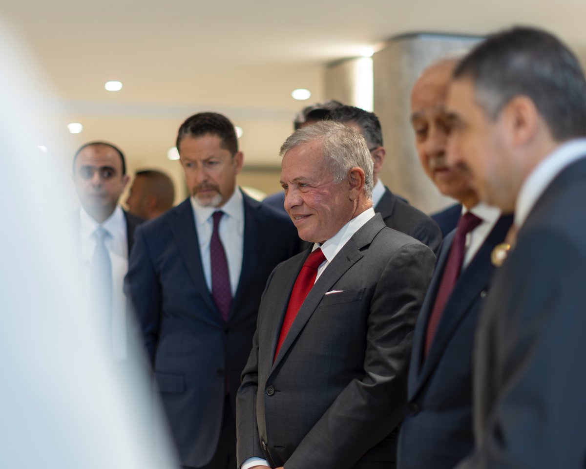 وجال جلالته في معرض صناعي أقيم بمشاركة ممثلين عن شركات ومصانع أردنية عاملة في قطاعات متعددة، واطلع على الجهود المبذولة لتعزيز تنافسية المنتجات الوطنية.