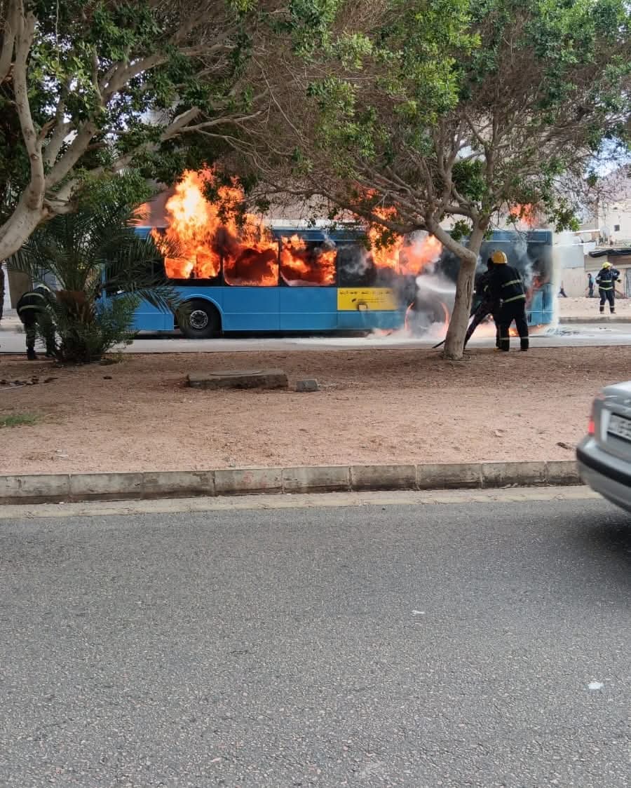 حريق هائل يطال حافلة للنقل العام في العقبة .. فيديو