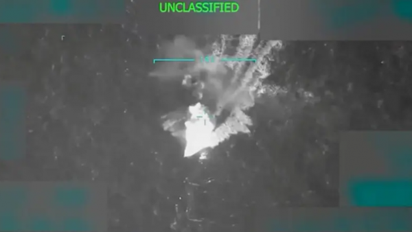 ويظهر مقطع فيديو نشرته القيادة الجنوبية الأميركية تناثر رذاذ الماء قرب أحد جانبي القارب، وبعد وابل ثان، يشتعل الجزء الخلفي من القارب. ثم يحيط به مزيد من الرذاذ وتتفاقم النيران. وفي الثانية الأخيرة من الفيديو، يظهر القارب وهو ينجرف مع بقعة كبيرة من النار إلى جانبه.
