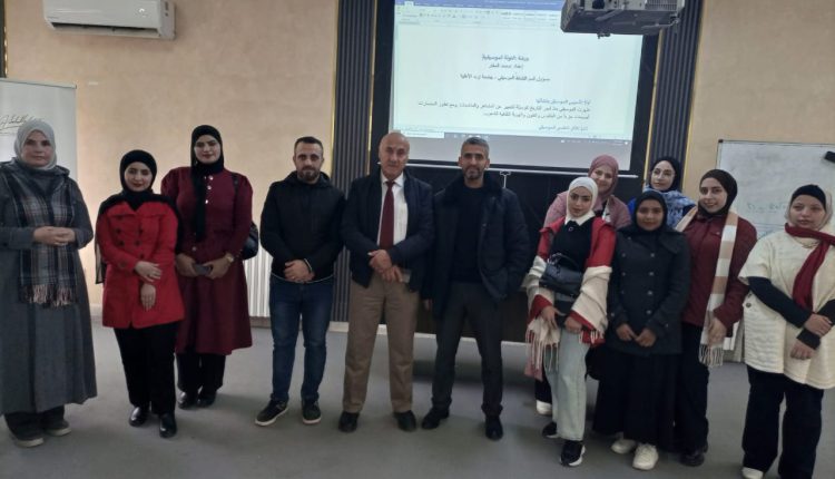 وكالة الناس – في إطار حرصها على تنمية الوعي الثقافي والفني لدى طلبتها، نظّمت عمادة شؤون الطلبة في جامعة إربد الأهلية محاضرة متخصصة بعنوان “أساسيات الموسيقى”، قدّمها الفنان محمد السقار، مسؤول النشاط الموسيقي في العمادة، بحضور الدكتور فايز العتوم عميد شؤون الطلبة، والدكتور عثمان الكنج مدير مكتب الإرشاد الوظيفي ومتابعة الخريجين في صندوق الملك عبدالله الثاني للتنمية، إلى جانب عدد من طلبة الجامعة والمهتمين بالشأن الفني والثقافي.