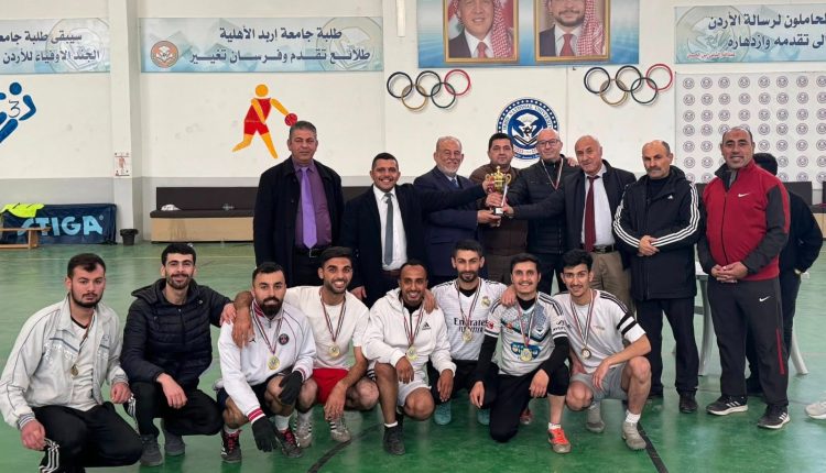 وكالة الناس -اختُتمت في جامعة إربد الأهلية بطولة خماسيات كرة القدم للكليات الأكاديمية، التي نظّمتها دائرة النشاط الرياضي في عمادة شؤون الطلبة، برعاية عميد شؤون الطلبة الدكتور فايز العتوم، مندوبًا عن رئيس الجامعة الأستاذ الدكتور ماجد أبو زريق، وبحضور كل من الأستاذ الدكتور فكري الدويري عميد كلية العلوم التربوية، والدكتور محمد الجراح نائب عميد شؤون الطلبة، والكابتن كمال المومني مدير دائرة النشاط الرياضي في الجامعة، والكابتن عمر الشقران/ عمادة شؤون الطلبة.