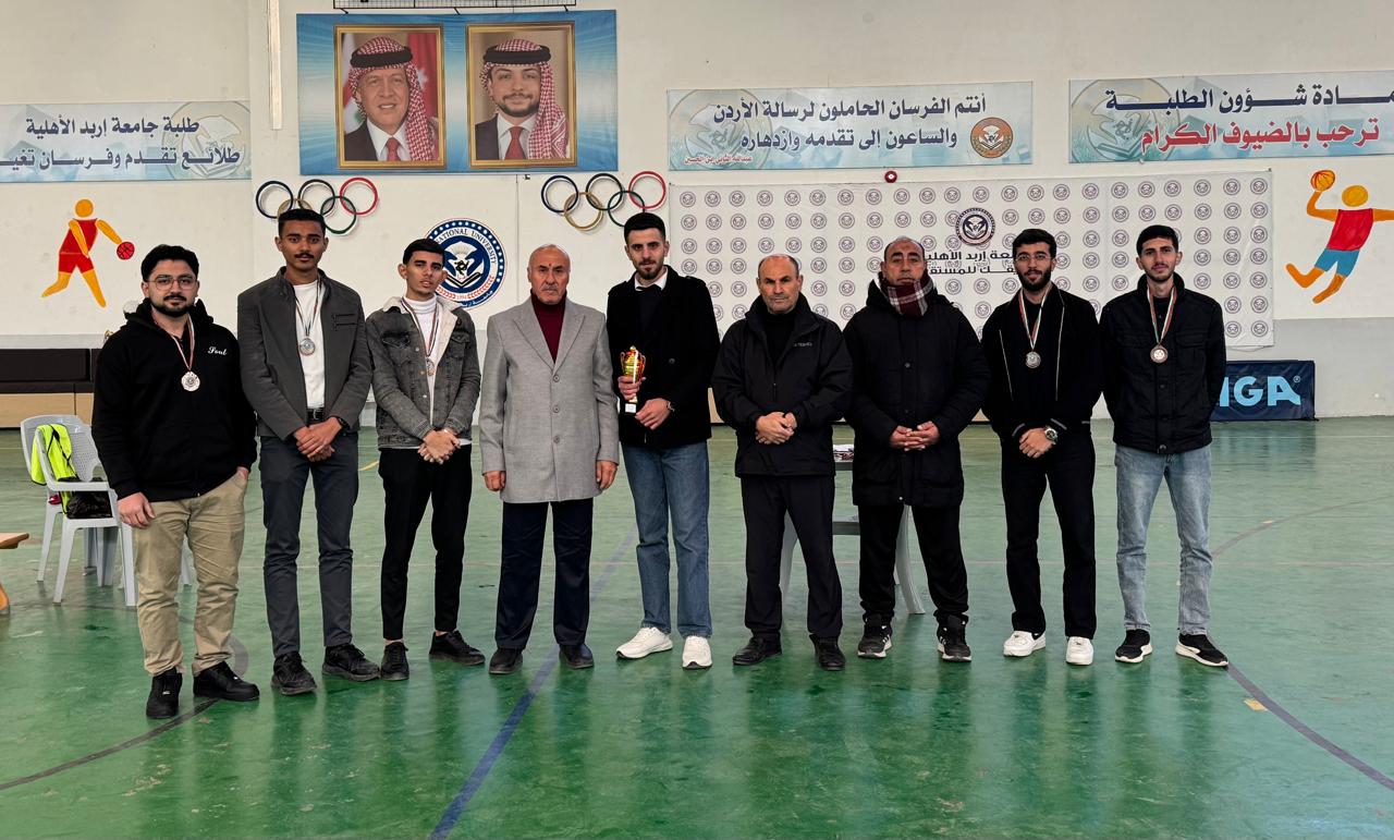 وفي ختام البطولتين، قام عميد شؤون الطلبة الدكتور فايز العتوم، مندوبًا عن رئيس جامعة إربد الأهلية الأستاذ الدكتور ماجد أبو زريق، وبحضور الكابتن كمال المومني، مساعد العميد ومدير دائرة النشاط الرياضي، بتتويج الطلبة الفائزين وتوزيع الكؤوس والميداليات، وأشاد بالمستوى المتميز الذي أظهره المشاركون، وبروح المنافسة الرياضية الراقية التي سادت أجواء البطولتين، مؤكدًا استمرار الجامعة في دعم وتنظيم الأنشطة الرياضية لما لها من دور فاعل في بناء شخصية الطلبة، وتعزيز روح العمل الجماعي والانتماء للجامعة، مشيرًا إلى أن هذه الفعاليات تندرج ضمن رؤية الجامعة في توفير بيئة جامعية متكاملة تُثري التجربة الأكاديمية والشخصية للطلبة.