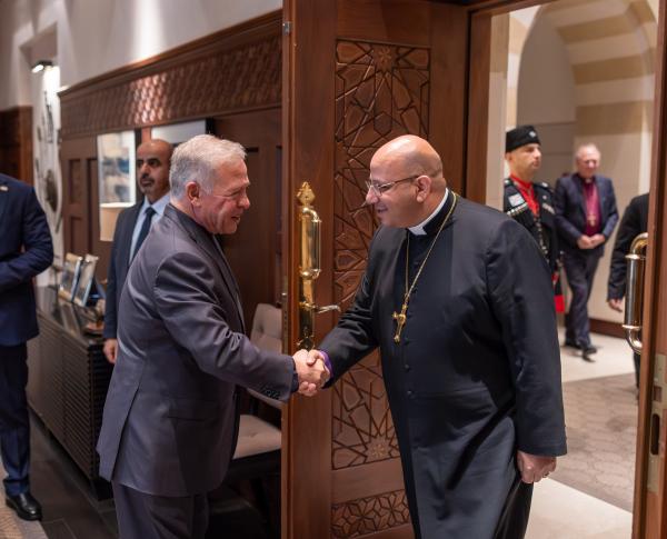 وأكد جلالته، خلال اللقاء الذي عقد في قصر الحسينية بحضور سمو الأمير الحسين بن عبدﷲ الثاني ولي العهد، استمرار الأردن بدعم الوجود المسيحي في القدس، انطلاقا من الوصاية الهاشمية على المقدسات الإسلامية والمسيحية في المدينة المقدسة.
