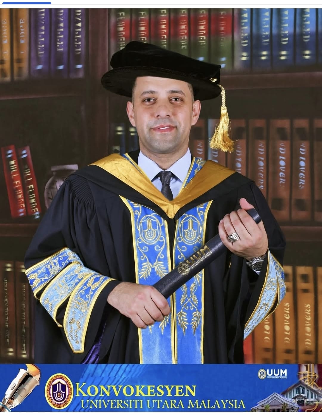 وكالة الناس – عمان – يتقدم العقيد المتقاعد عبدالله جرادات وعقيلته هدى الجراح والابناء باجمل باقات التهنئة من الابن الدكتور معاذ جرادات بحصوله على درجة الدكتوراه من جامعة Universiti Utara Malaysia في دولة ماليزيا، تخصص فلسفة الفن وعلم الجمال- بامتياز”.متمنين له مسيرة علمية وعملية موفقة في خدمة وطنه الاردن في ظل حضرة صاحب الجلالة الملك عبد الله الثاني ابن الحسين حفظه الله