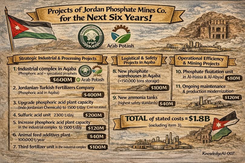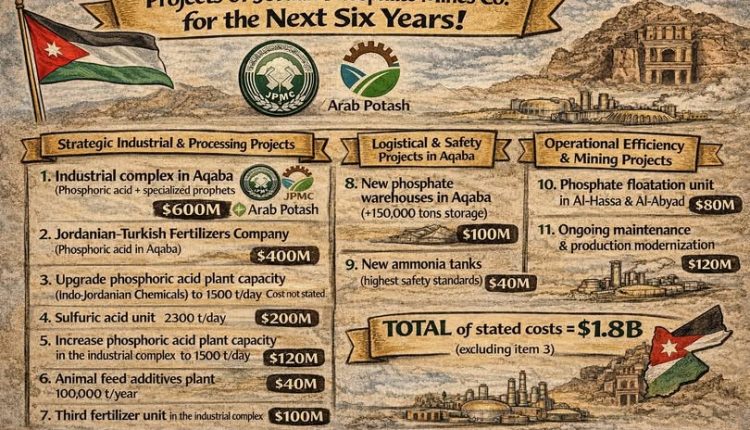 مشاريع شركة مناجم الفوسفات الأردنية للسنوات الست المقبلة (العقبة ومحاور التوسّع الصناعي)